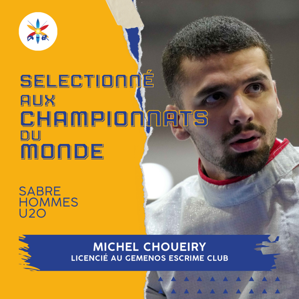 Notre Région pourra compter sur la présence de MICHEL CHOUEIRY (GÉMENOS ESCRIME CLUB), sélectionné en sabre hommes U20 (junior).